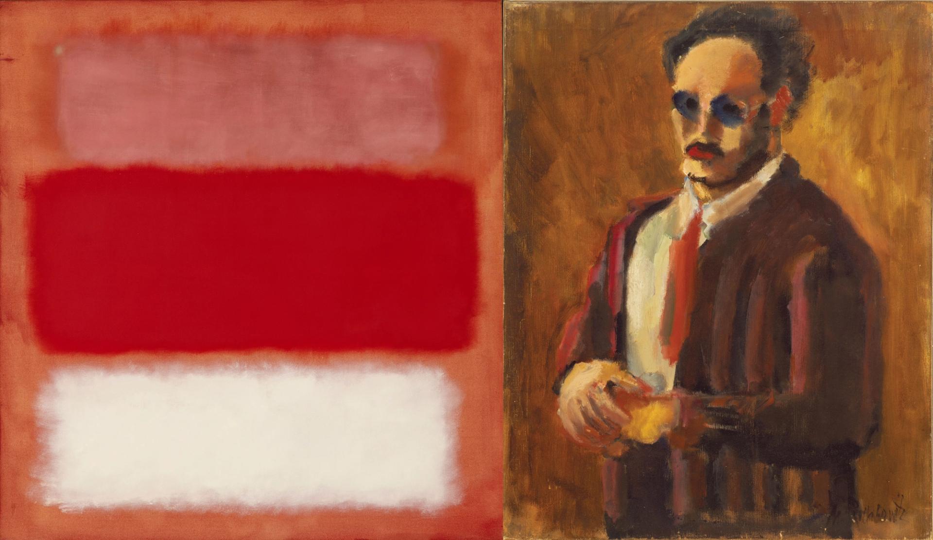 Rothko’s Mild Cloud, Darkish Cloud (1957) and Self Portrait (1936) © 1998 Kate Rothko Prizel & Christopher Rothko – Adagp, Paris, 2023