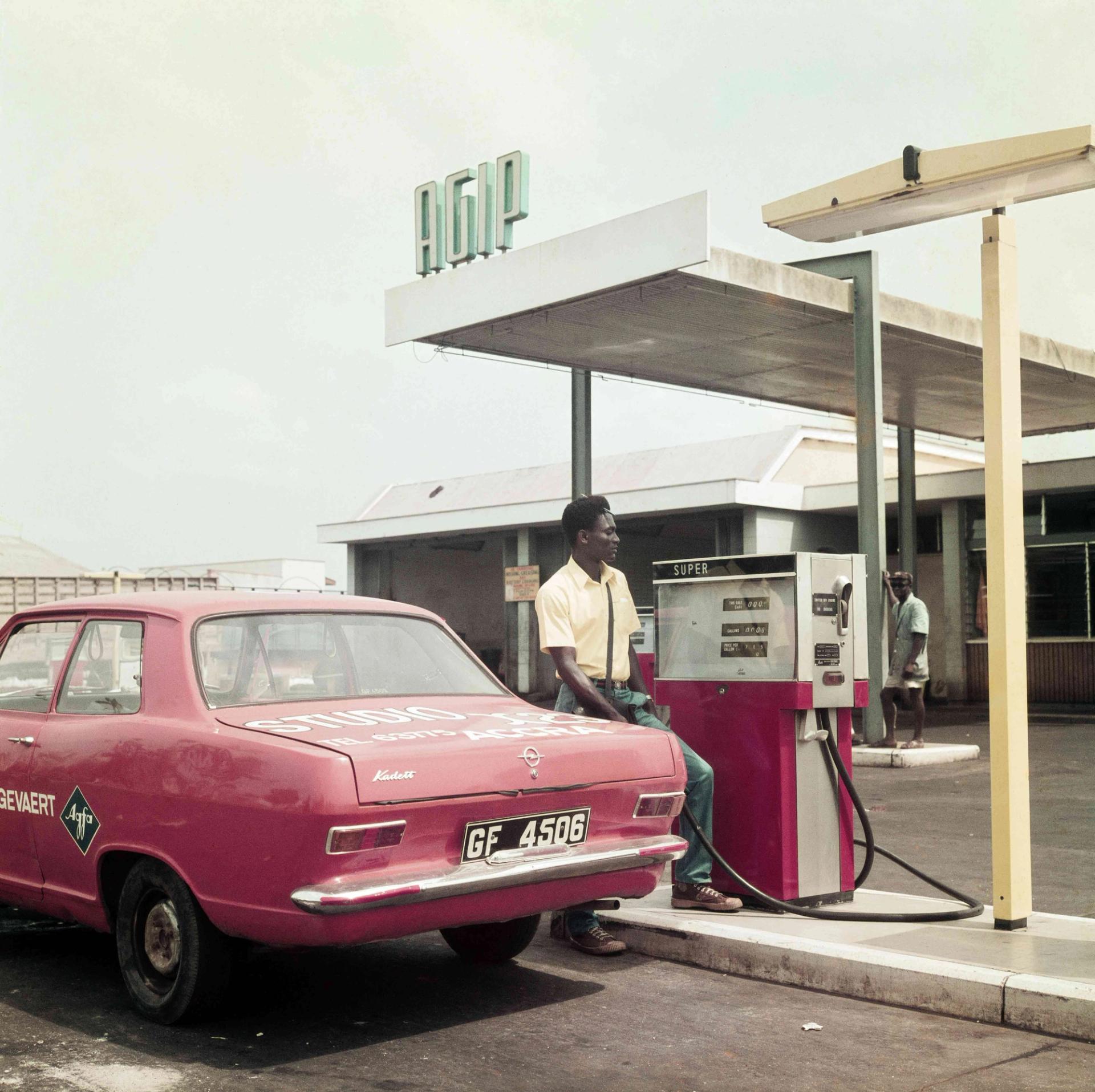 James Barnor, Filling up the Studio X23 car at the Agip petrol station for its 1974 calendar, Accra (1973)