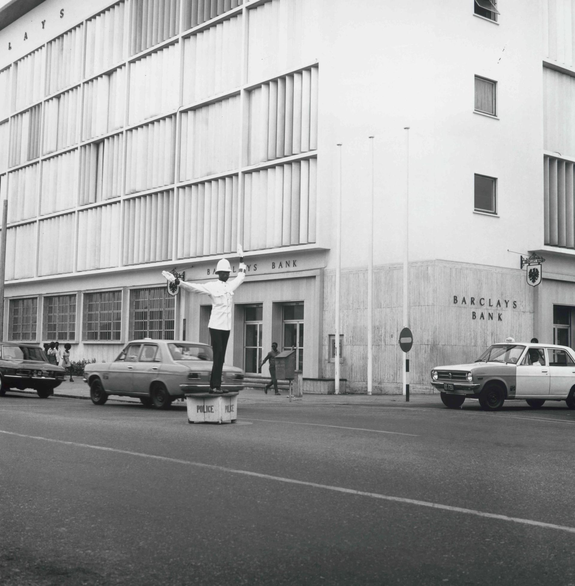 James Barnor, A traffic officer on duty in the business district (Atta Mills High Street), Accra (1970s)