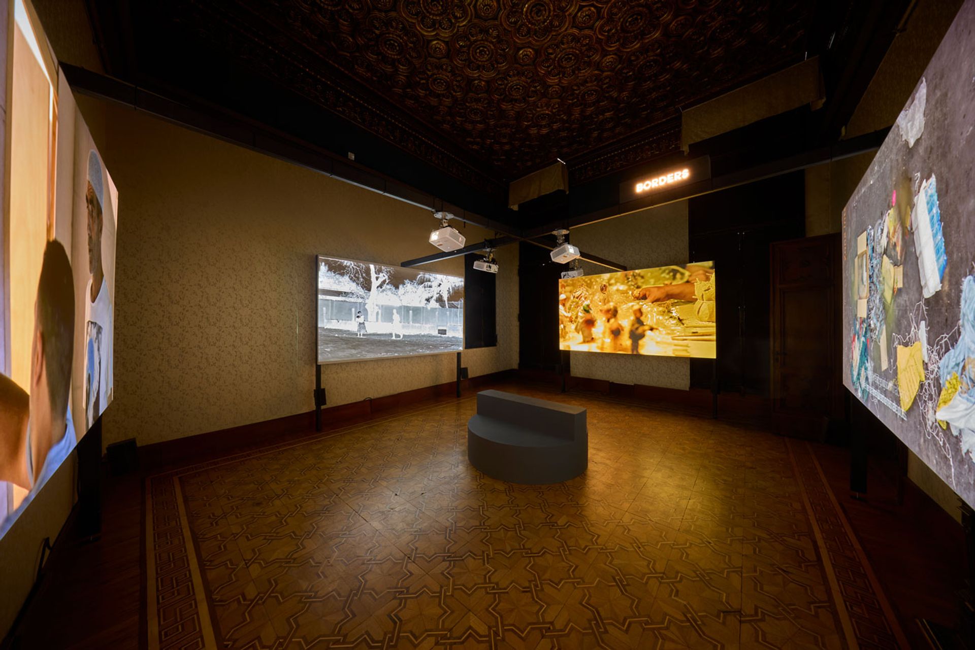 Borders, an installation from Your Ghosts Are Mine—Expanded Cinemas, Amplified Voices, an exhibition produced by Qatar Museums at ACP Palazzo Cavalli-Franchetti, in Venice © David Levene 2024. Courtesy Qatar Museums