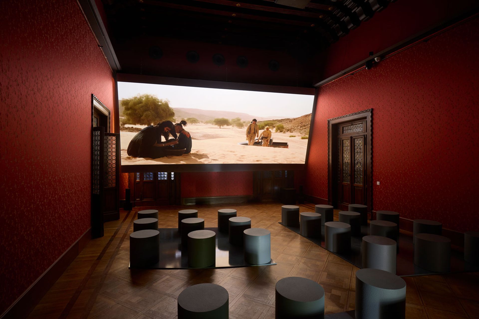 Deserts, the opening art-video installation of Your Ghosts Are Mine—Expanded Cinemas, Amplified Voices, an exhibition produced by Qatar Museums at ACP Palazzo Cavalli-Franchetti, in Venice © David Levene 2024. Courtesy Qatar Museums