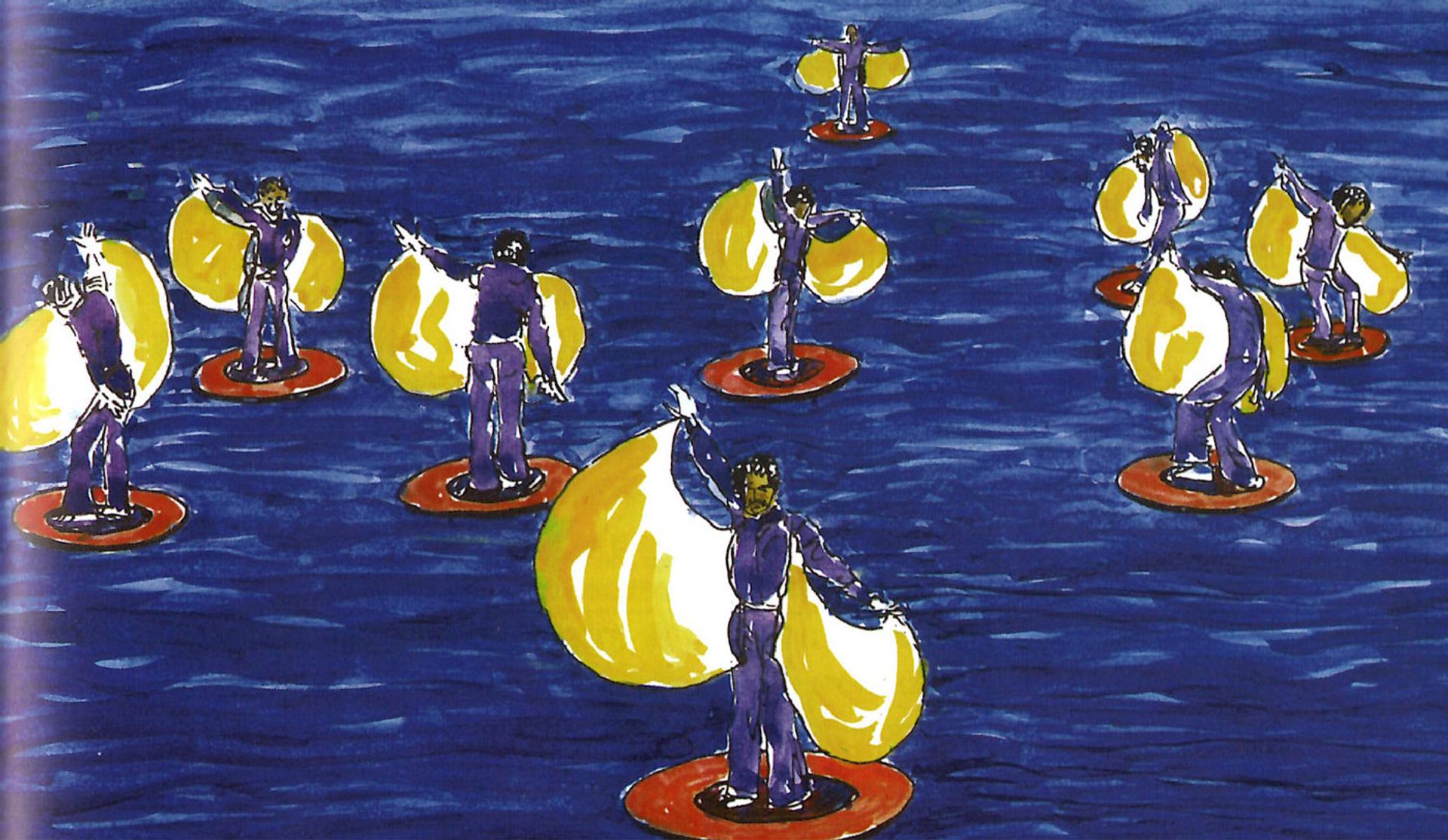 In opposition to sports, Araeen hoped to create a meditative exploration of movement, closer to ballet or tai chi, that would also be a collective action, relying on collaboration instead of competition. Discosailing aspired to “challenge what the self-centred narcissistic body produces as a work of art, and to offer an alternative to what is trapped in a decaying and decadent consumer culture,” he wrote. “This alternative is for an optimistic and affirmative future based on harmonious relationships not only between human beings but also with natural forces such as water and wind.”