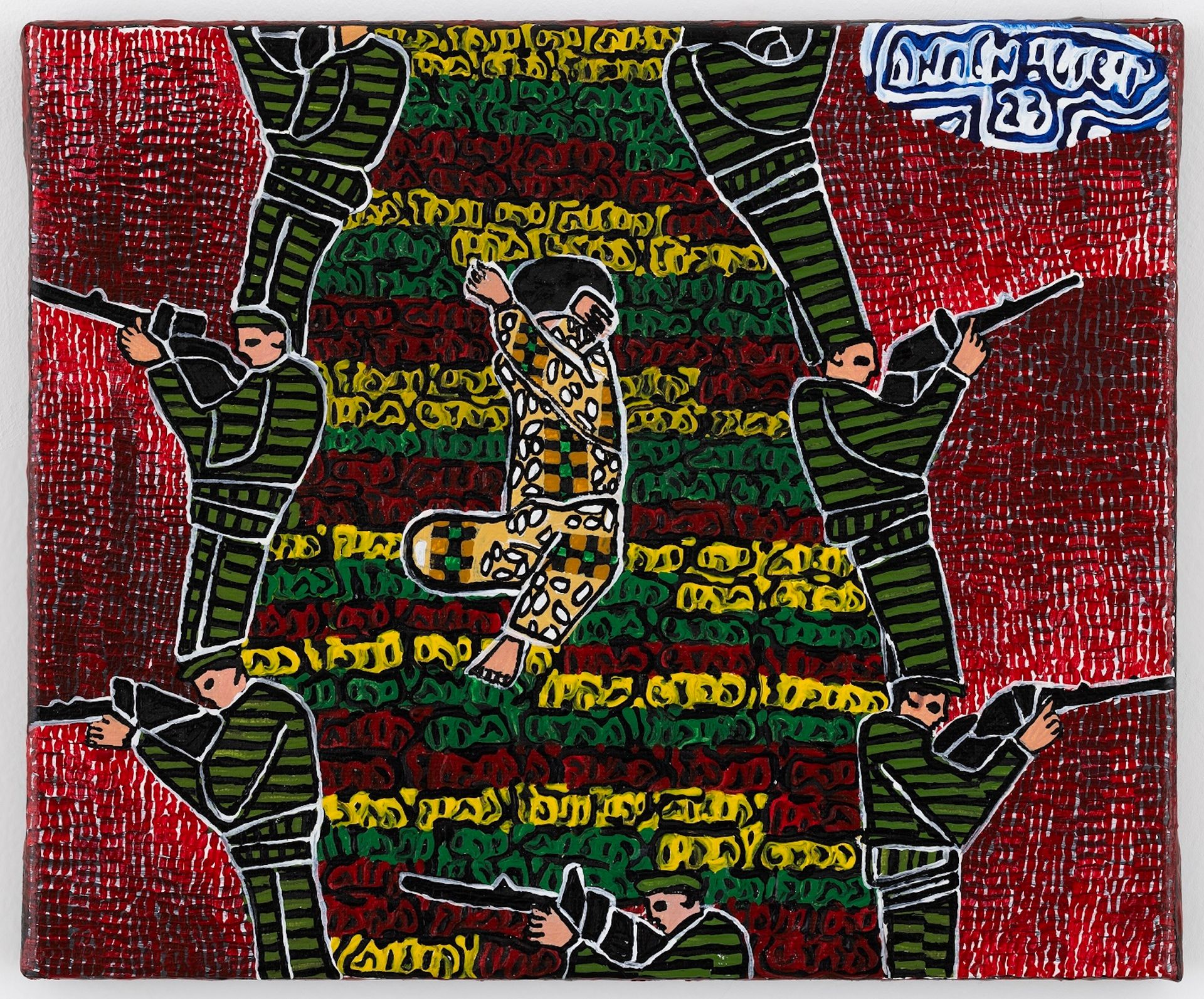 War Decorations 1 was the first of what grew into a series of 22 chronologically numbered paintings bearing that sardonic title, all being publicly debuted now at the Tel Aviv Museum of Art. The exhibition, one of three at the museum marking the anniversary of 7 October, also includes two 2010 Mazliach paintings from the museum’s permanent collection and five works created after War Decorations. The other shows that opened in tandem are ’73-’23: Video Salon Between Two Wars, an anthology of 52 Israeli video works produced in connection with the Yom Kippur War of 1973 and the current war, and I Don’t Want to Forget, an exhibition of works by 25 Israeli artists created in response to 7 October, from the Mareva and Arthur Essebag collection.