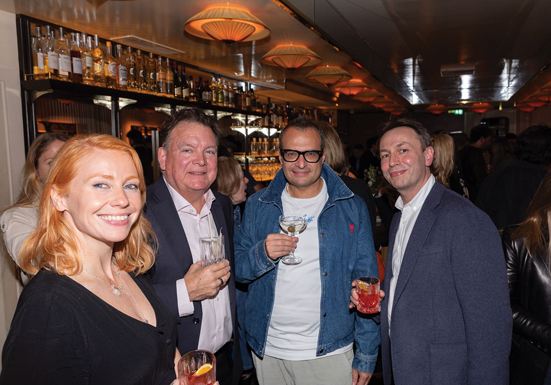 Left to right: Anny Shaw, the X Muse co-founders Robert Wilson and Vadim Grigoryan, and Ben Lukea (sans spectacles) at Bar des Prés © David Owens
