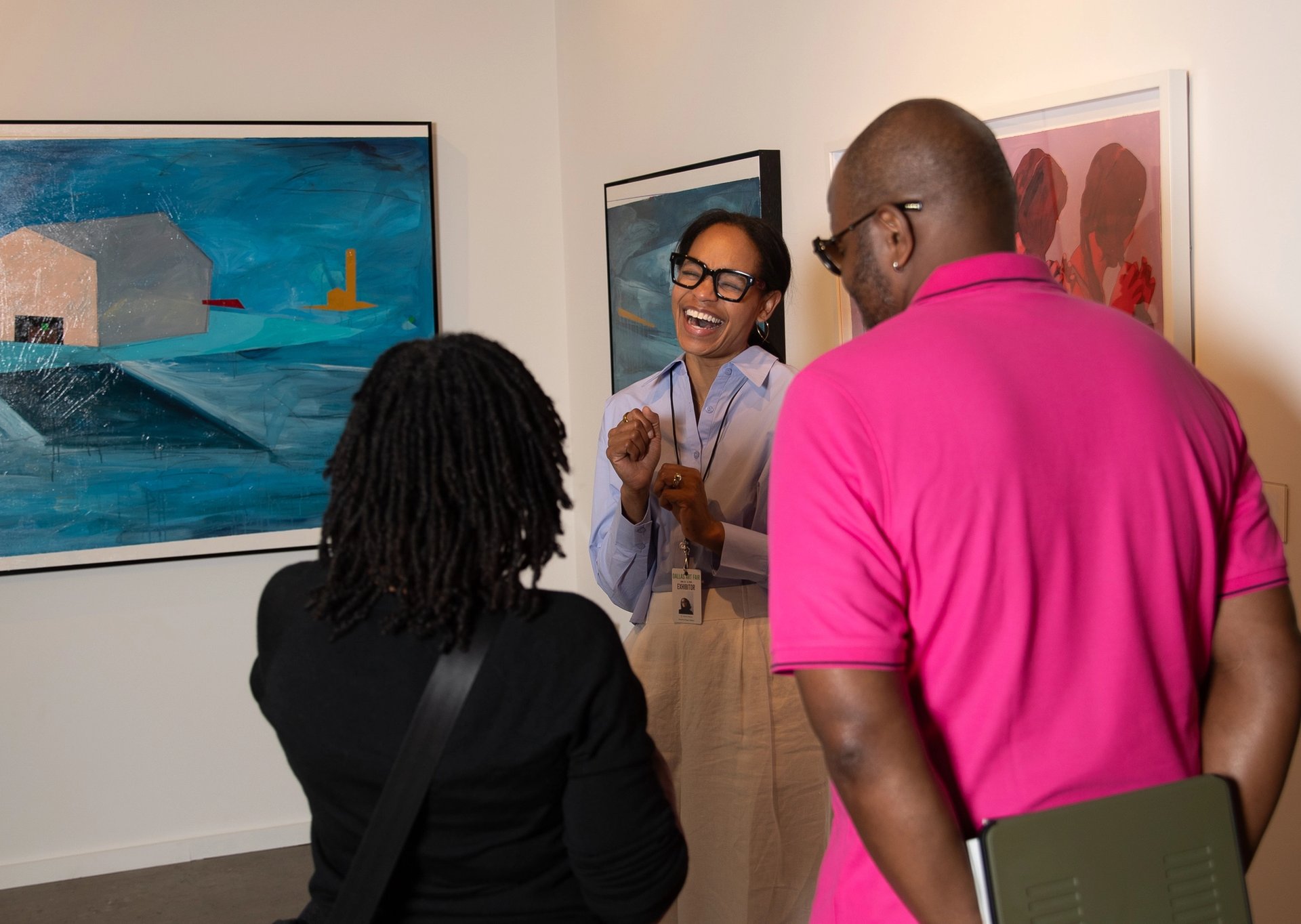 Valerie Gillespie from the Dallas-based gallery Pencil on Paper speaks to visitors at the Dallas Art Fair Courtesy the Dallas Art Fair