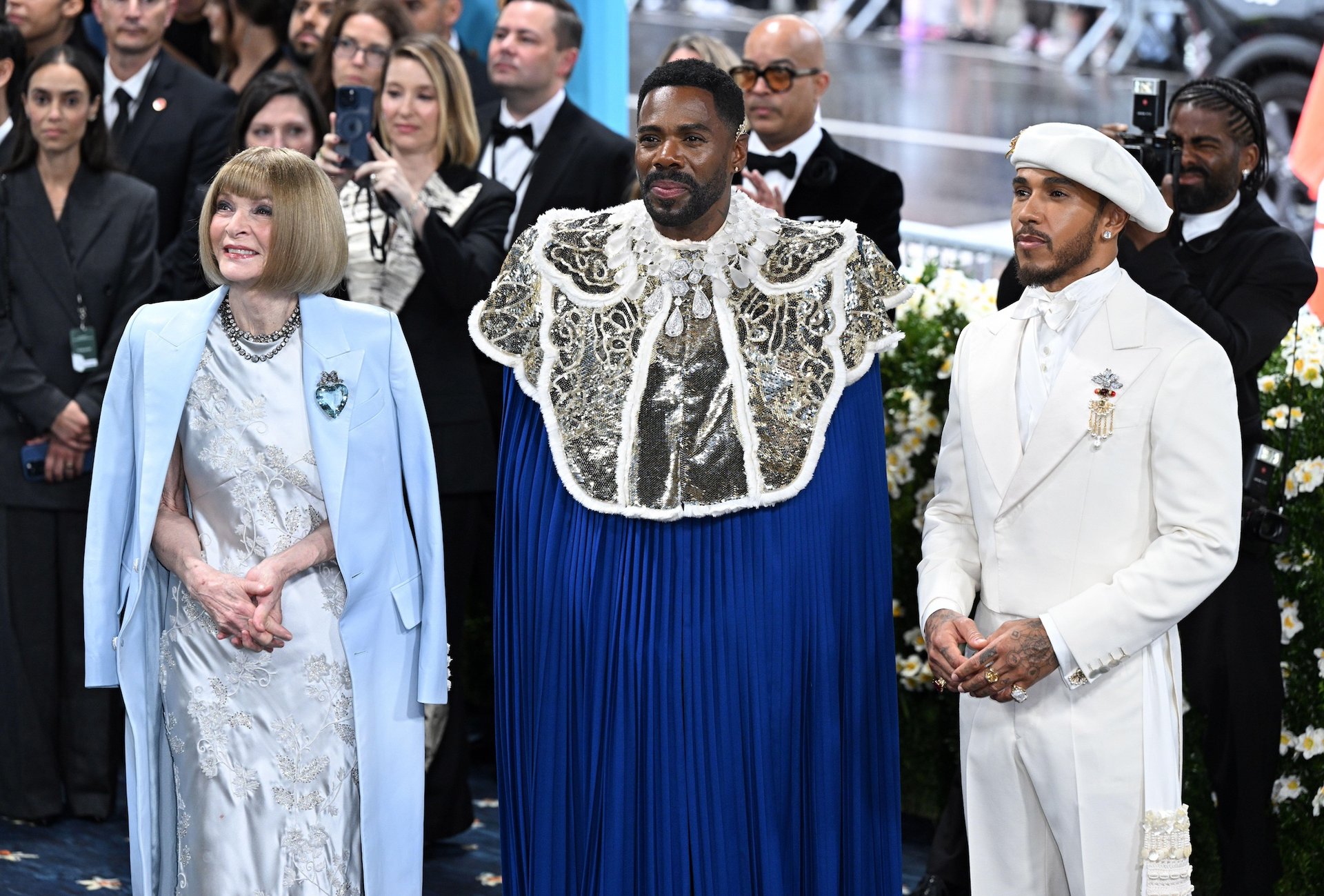 From left to right, Anna Wintour, Colman Domingo and Lewis Hamilton at the 2025 Met Gala Photo by Doug Peters / EMPICS / Alamy Live News