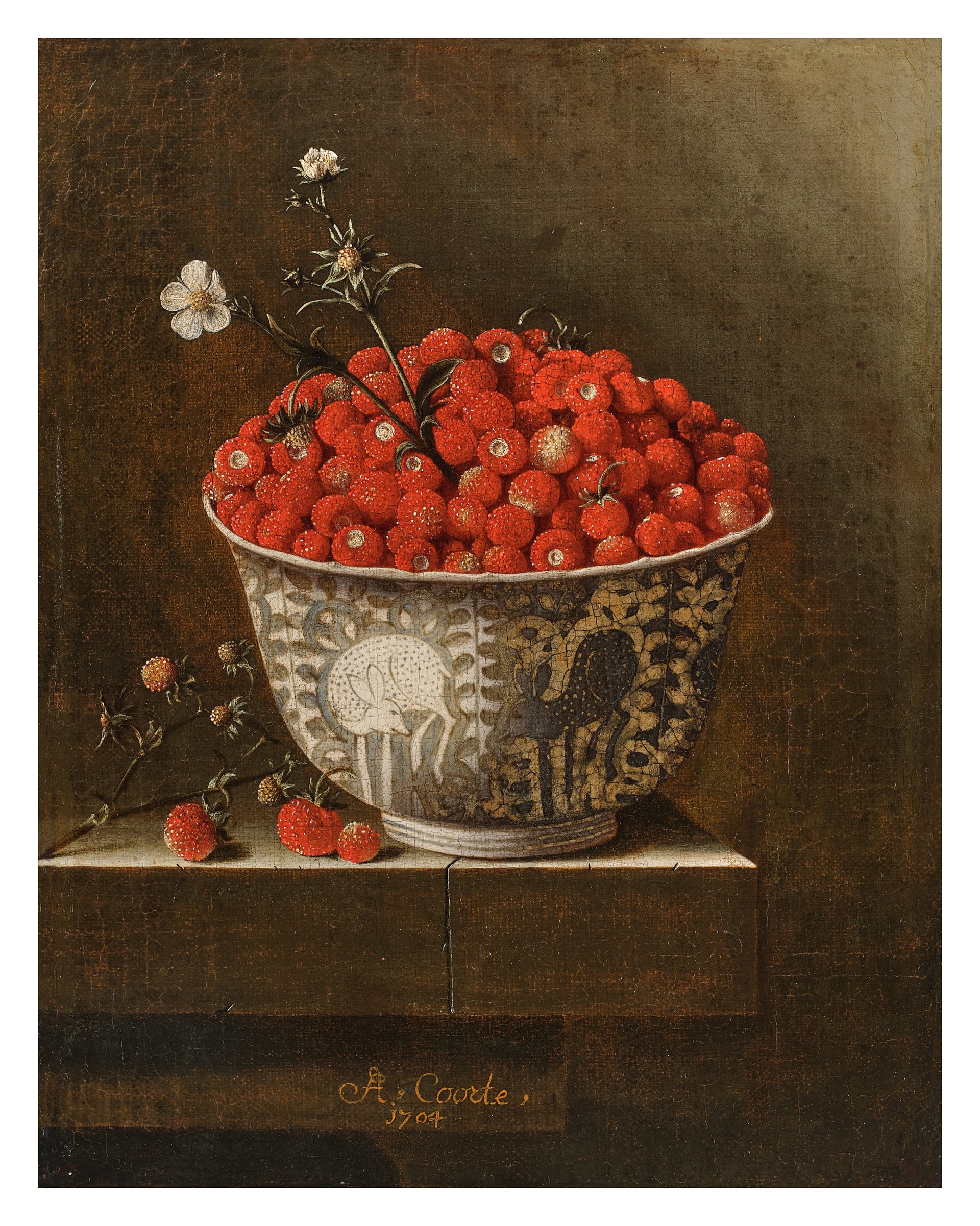Adriaen Coorte, Wild Strawberries in a Kraak Wan-Li Bowl (1704)