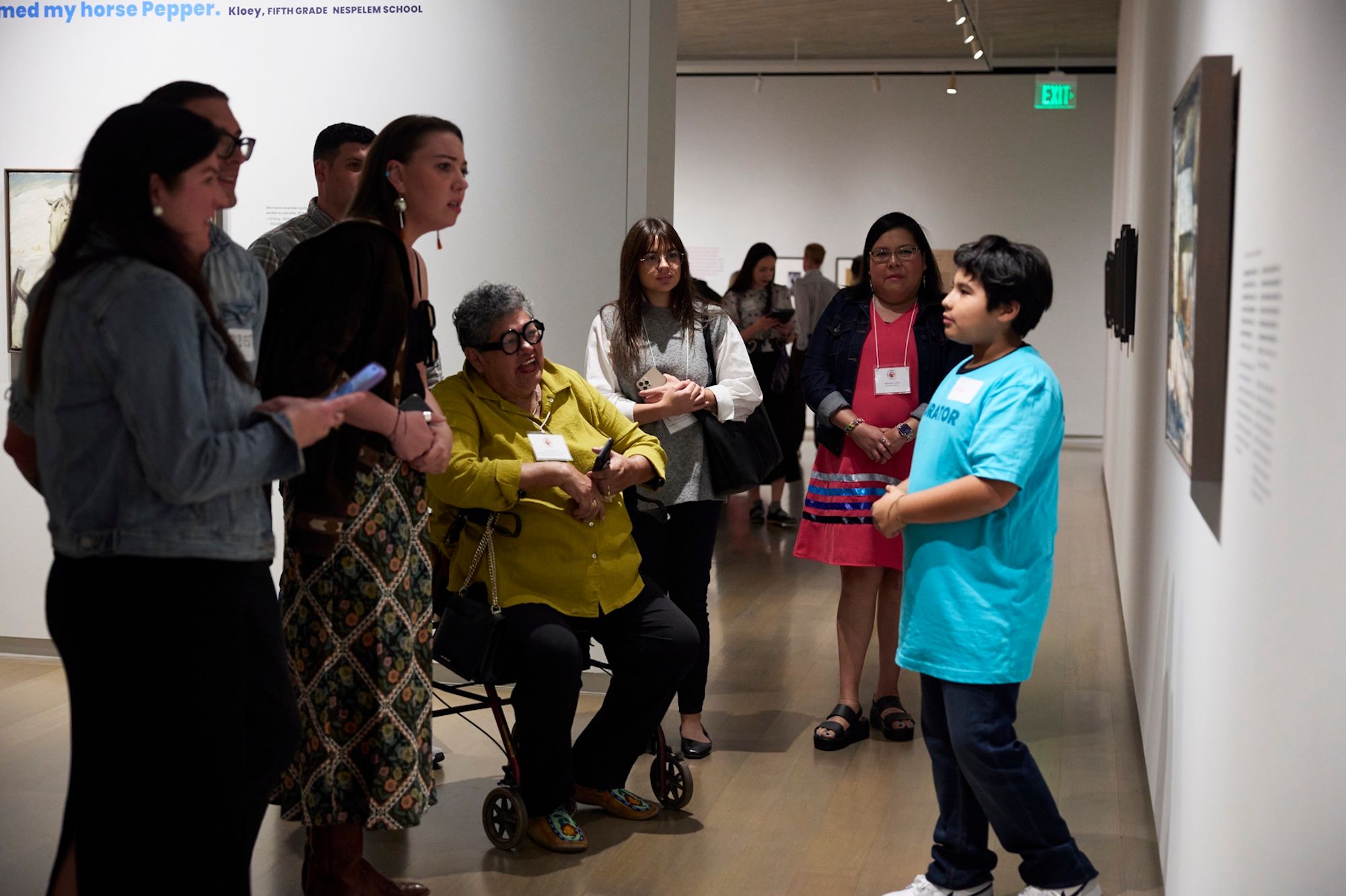 Nine Colville students and their families travelled from Nespelem to Denver for the exhibition’s opening, each wearing shirts emblazoned with “CURATOR”. One student seized the podium microphone and said, “Come see my painting,” in reference to the Still work he had selected to exhibit and discuss in the wall text. Another student boasted: “The curator is here.”