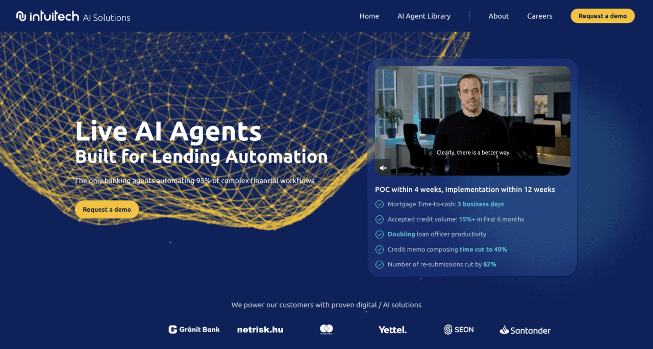 From simple workflows to complex cases such as commercial loans and mortgages, Intuitech delivers AI agents capable of automating over 90% of manual tasks, shortening approval times and lowering costs. The company was founded in 2018.